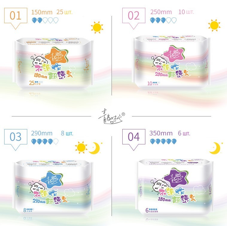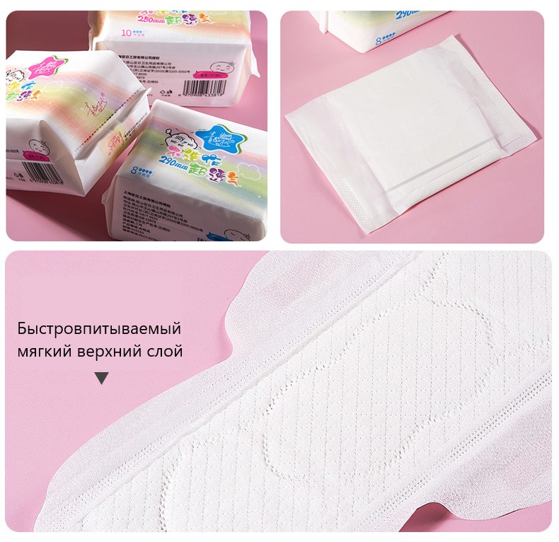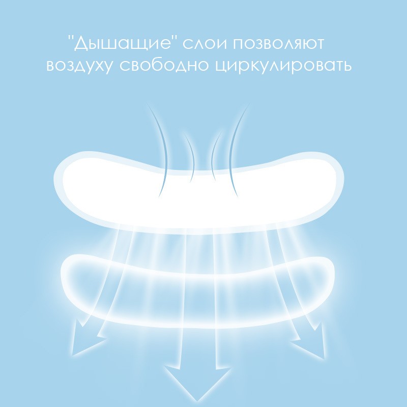 Благодаря 7 слоям защиты, суперсорбенту и эффекту гидроизоляции, прокладки быстро поглощают влагу, целлюлозный распределяющий слой равномерно распределяет и блокирует влагу.
