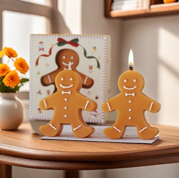 Свеча изготовлена исключительно вручную и имеет прекрасную форму пряничного человечка.