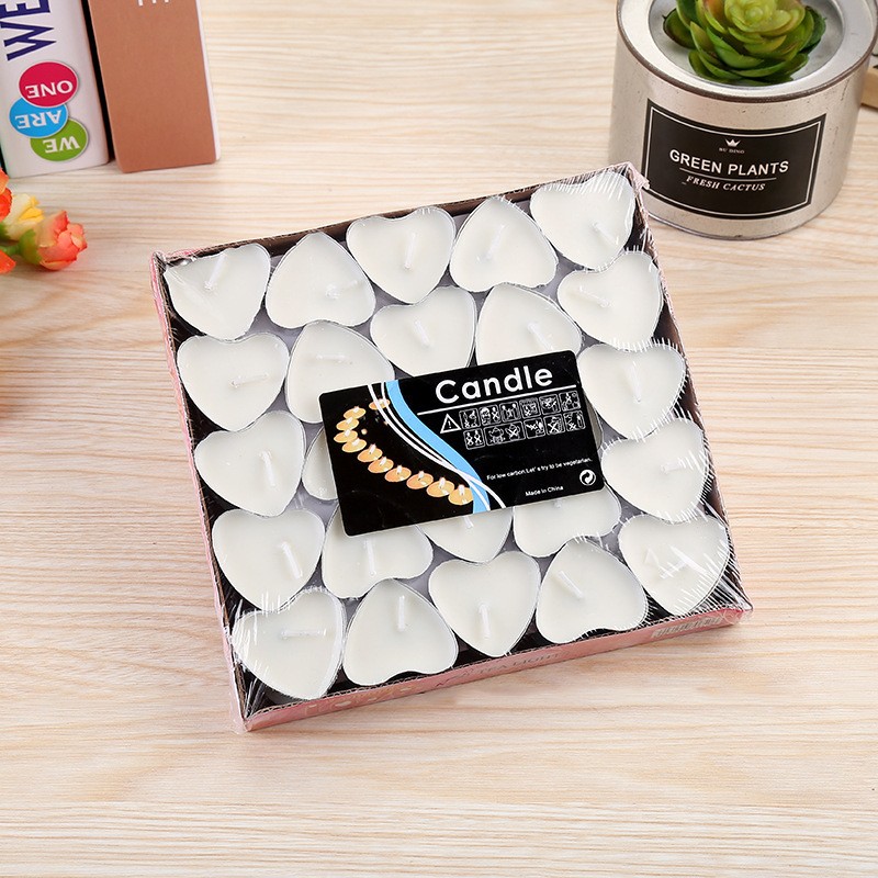 Набор состоит из 50 свечей, размером 3,8 см. * 3,8 см. , высотой 0,9 см.