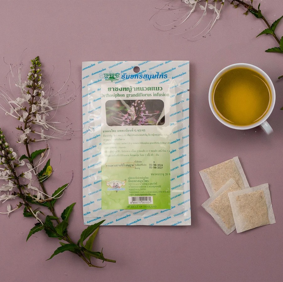 Чай из Ортосифона (Кошачий ус Cat's Whisker) от тайского бренда Thanyaporn Herbs — это натуральный травяной напиток, который традиционно используется в Таиланде для поддержки работы почек и выведения лишней жидкости из организма. Он обладает мягким мочегонным эффектом, очищающими и противовоспалительными свойствами.