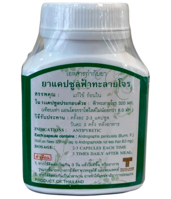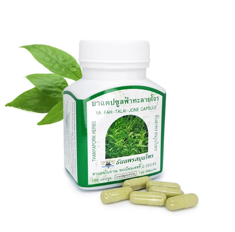 Основной компонент капсул Фа Талай Джон – Andrographis paniculata (Андрографис метельчатый), производитель популярная в Таиланде компания Thanyaporn Herb.