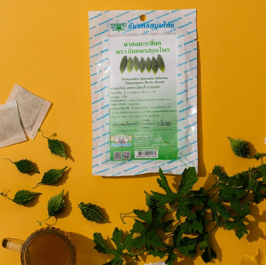 Натуральный травяной диабетический чай на основе растения момордика (горькая дыня или горький огурец) для снижения уровня сахара в крови, а также с противовоспалительным и общеукрепляющим действиями от Тайского производителя фитопрепаратов компании Thanyaporn Herbs.
