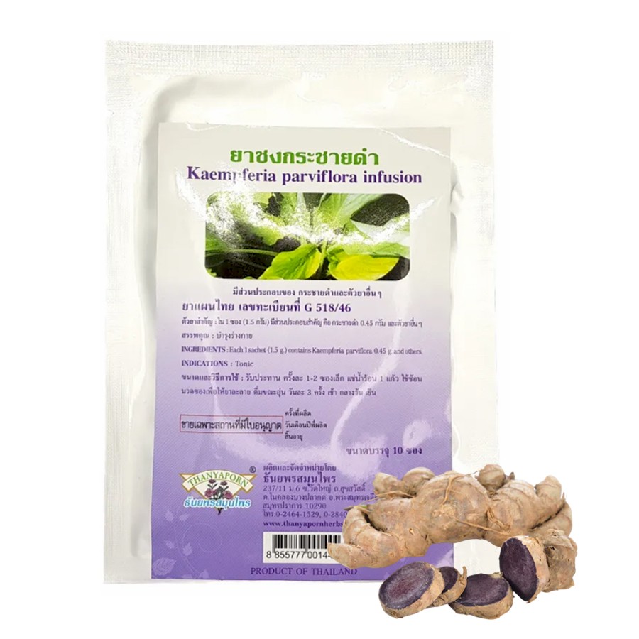 Растение Kaempferia parviflora (Чёрный галангал) в тайской медицине используется для повышения выносливости организма, улучшения потенции, нормализации кровообращения и укрепления иммунитета.