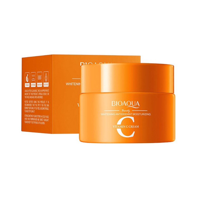 Крем для лица с витамином С и экстрактом цитрусов BIOAQUA способствует регенерации клеток, выполняет защитную и омолаживающую функцию, повышает эластичность и упругость эпидермиса, выравнивает тон и рельеф, устраняет пигментацию.