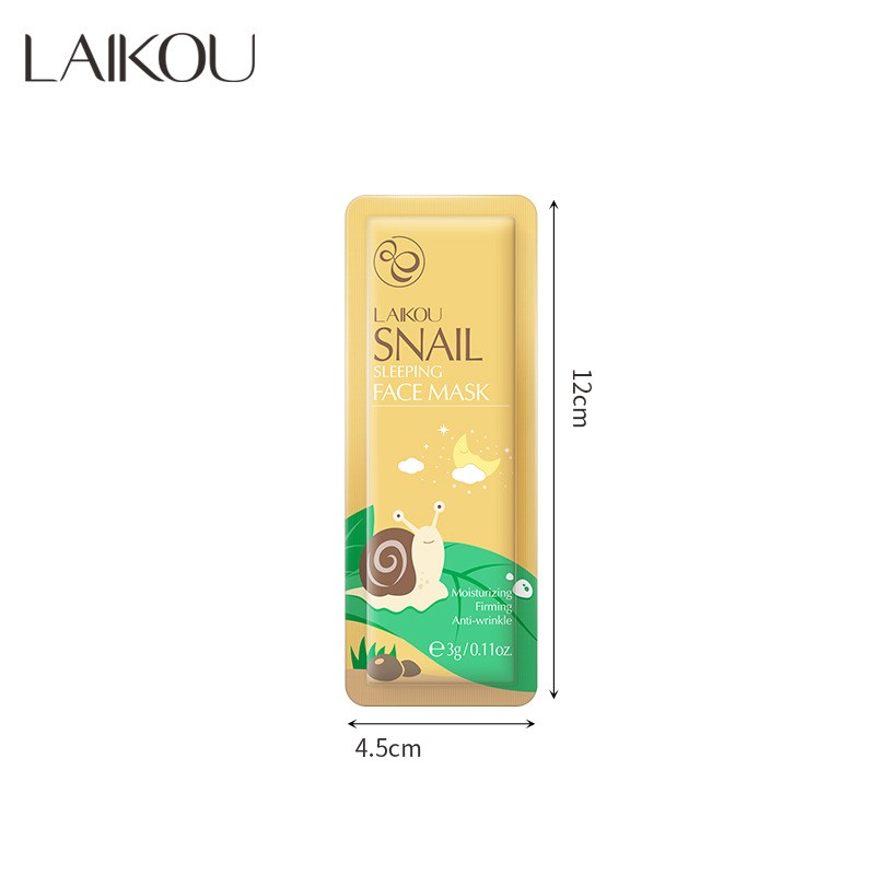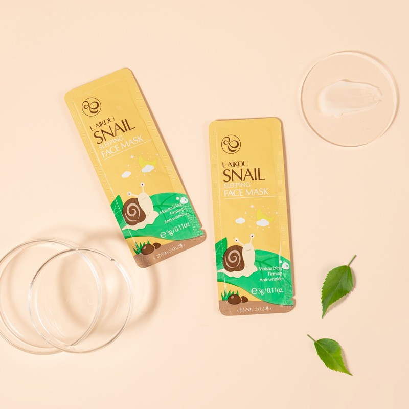 Ночная маска с улиточным секретом Laikou Snail Sleeping Face Mask (3 г) способствует глубокому восстановлению кожи на протяжении ночного сна.
