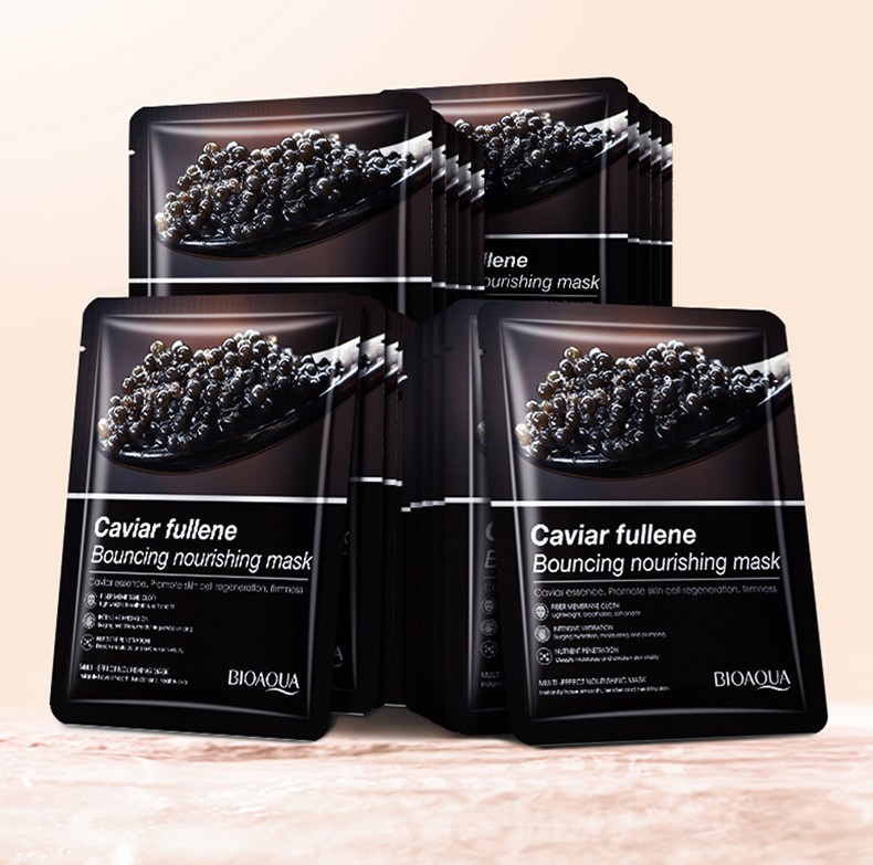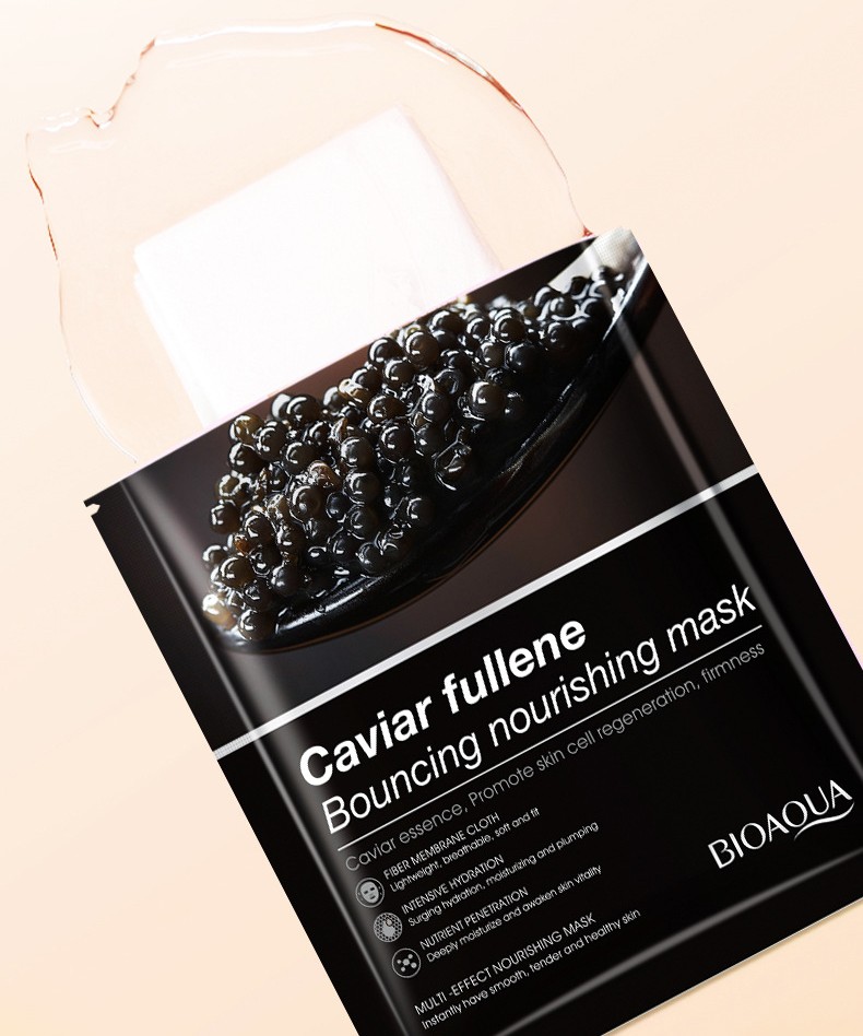 Питательная тканевая маска с экстрактом черной икры BIOAQUA Caviar fullene Bouncing nourishing mask глубоко увлажнит, повысит упругость кожи, придаст коже здоровой сияние, улучшает состояние кожи и продлевает ее молодость.
