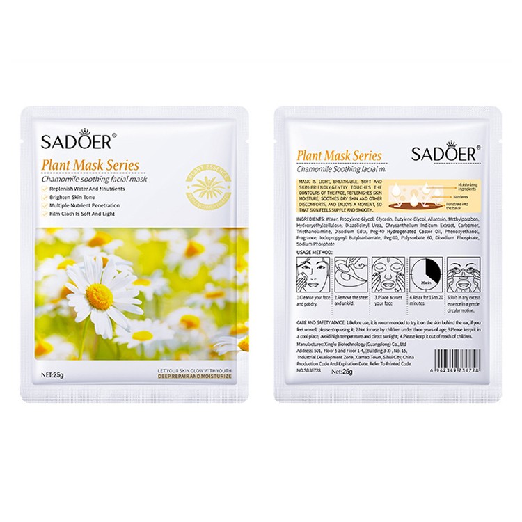 Ключевой компонент маски – экстракт ромашки, который обладает выраженными успокаивающими и бактерицидными свойствами, а также прекрасно подходит для устранения шелушений на чувствительной, склонной к сухости коже.