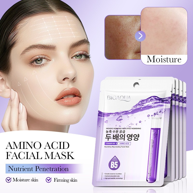 Восстанавливающая тканевая маска для лица с витамином B5 и аминокислотами ускорят процесс метаболизма клеток, интенсивно увлажняет кожу, обладает антиоксидантным эффектом, тонизирует кожу лица и делает ее более упругой и эластичной.