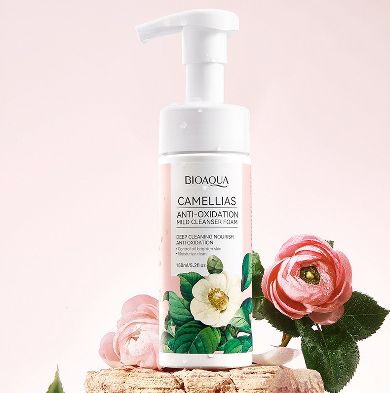 Нежная пенка для умывания BIOAQUA с экстрактом камелии обогащена множеством полезных компонентов и витаминов, которые не только восстанавливают и омолаживают кожу лица, но и деликатно очищают кожу от загрязнений, сального блеска и остатков макияжа, не оставляя чувства стянутости и сухости.