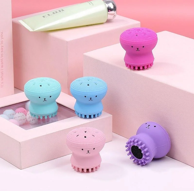 Способ применения: Намочите водой губку внутри осьминожка, добавьте пенку, вспеньте, протирайте лицо по массажным линиям.