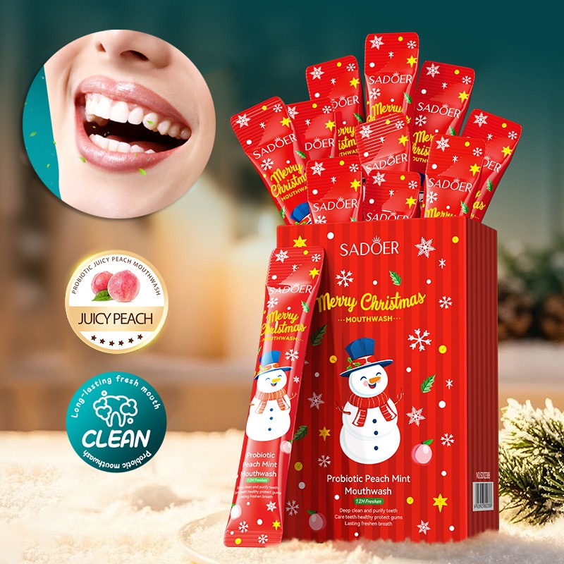 Ополаскиватели для полости рта с пробиотиком ПЕРСИК-МЯТА Sadoer, Набор 20 шт. по 10 мл.