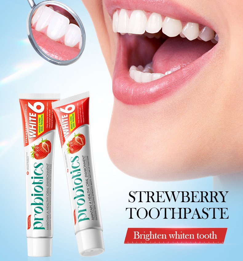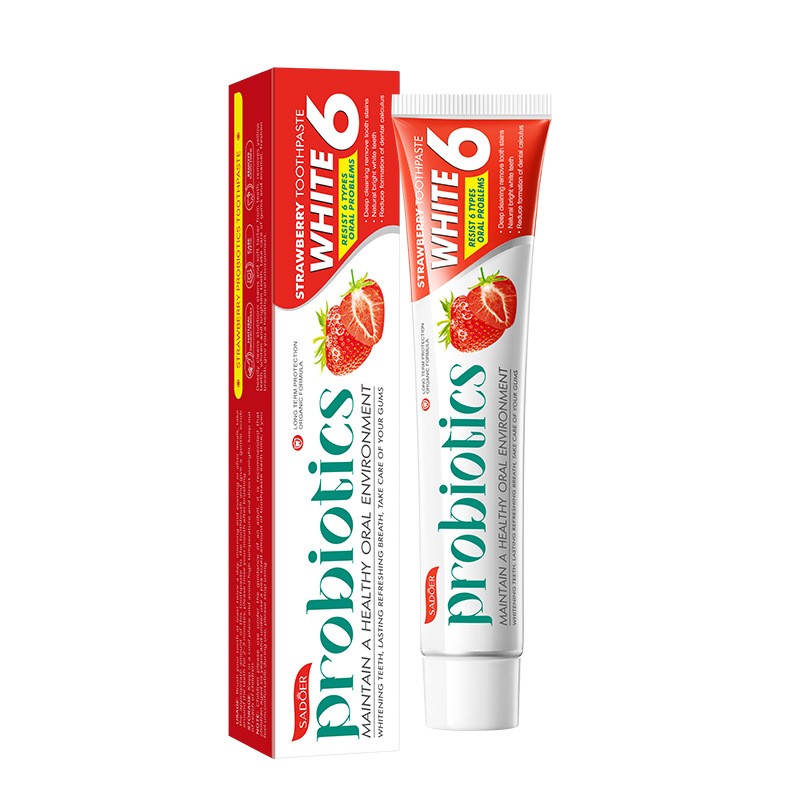 Зубная паста отбеливающая с КЛУБНИКОЙ Sadoer обладает антибактериальным отбеливающим действием.