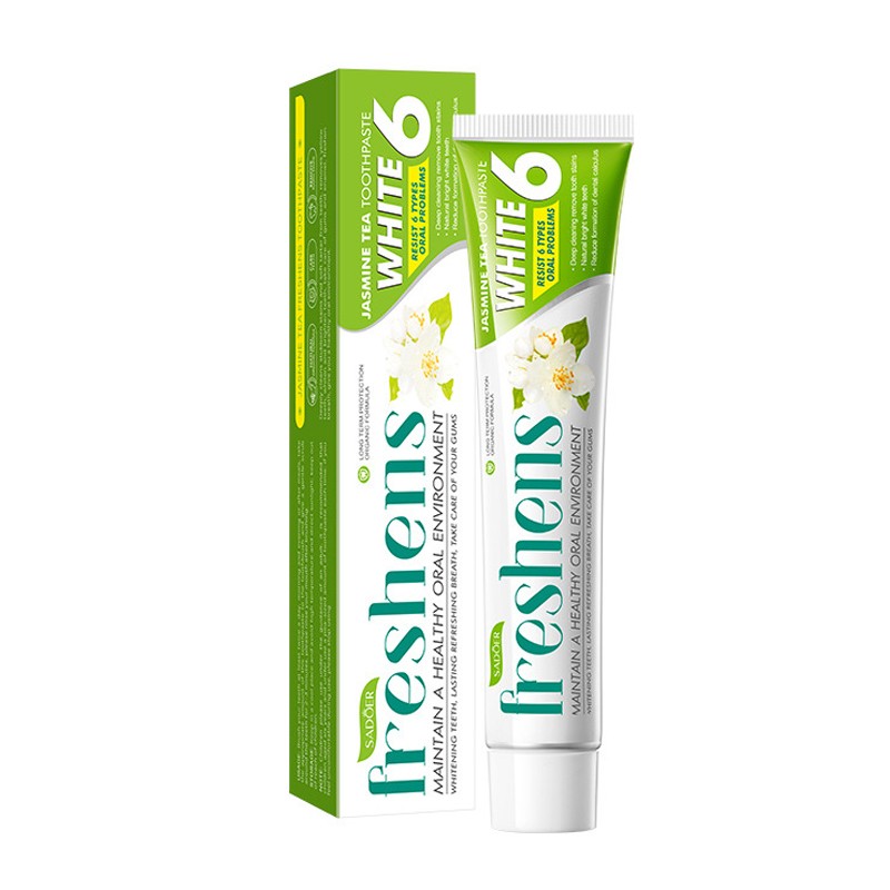 Зубная паста отбеливающая Жасминовый чай Sadoer обладает антибактериальным отбеливающим действием.