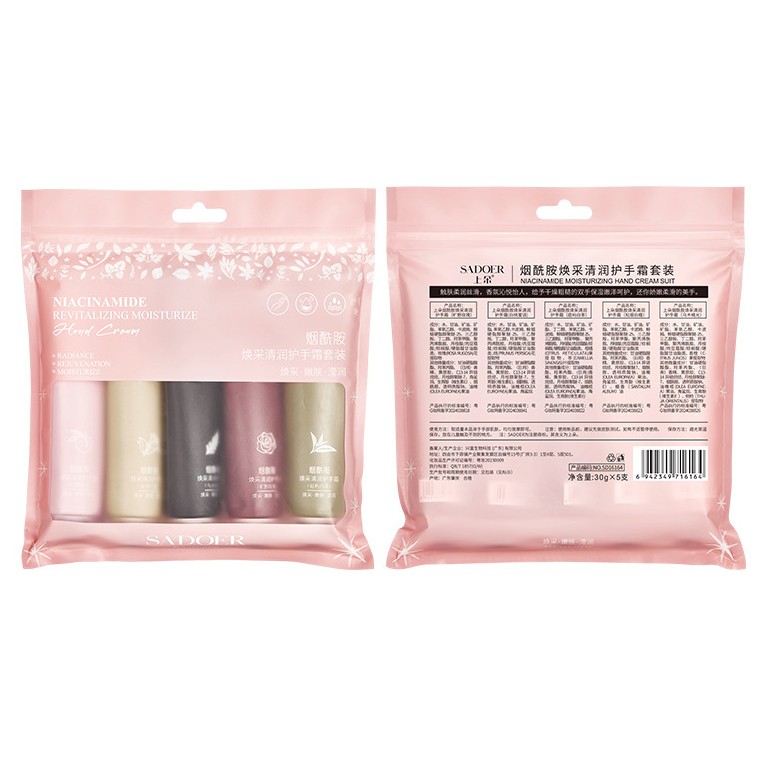 В наборе 5 кремов для рук в ниацинамидом по 30 гр. каждый.