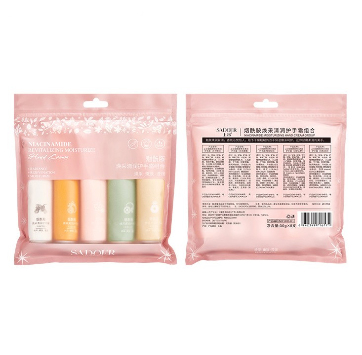 В наборе 5 кремов для рук в ниацинамидом по 30 гр. каждый.