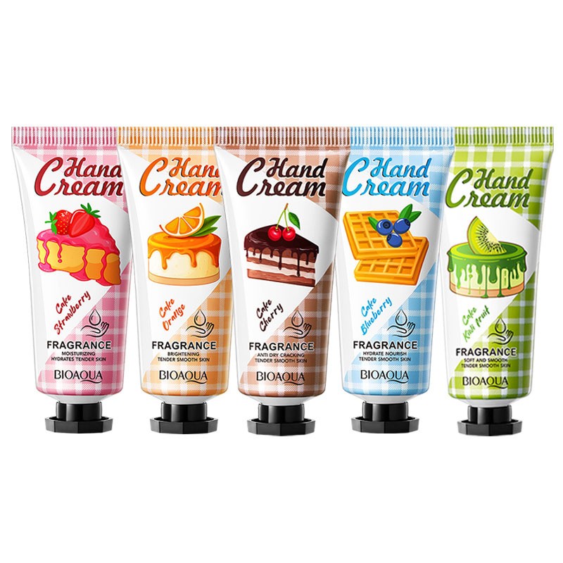 Увлажняющие и питательные ароматные крема для рук с фруктовыми экстрактами, глицерином и аллантоином.