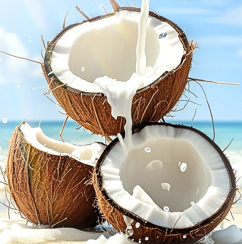 - Экстракт кокоса - натуральный гипоаллергенный продукт, в составе которого комплекс витаминов А, С, Е. Оказывает мощное антиоксидантное действие, запускает процессы регенерации клеток. Натуральные кислоты помогают восстановить гидро-липидный баланс кожи, удерживают влагу в клетках, замедляют процессы старения.