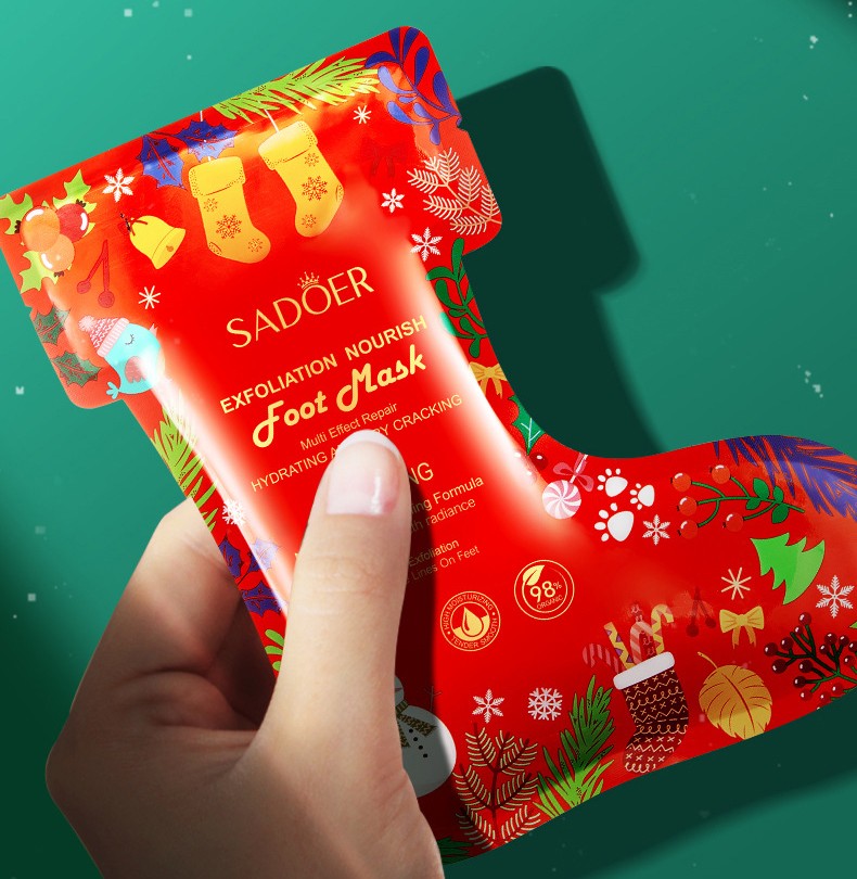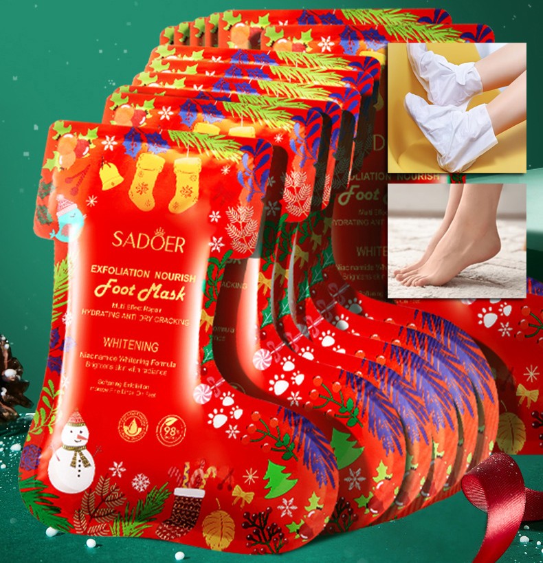 Новогодняя маска-носочки – прекрасный вариант ухода за ногами.