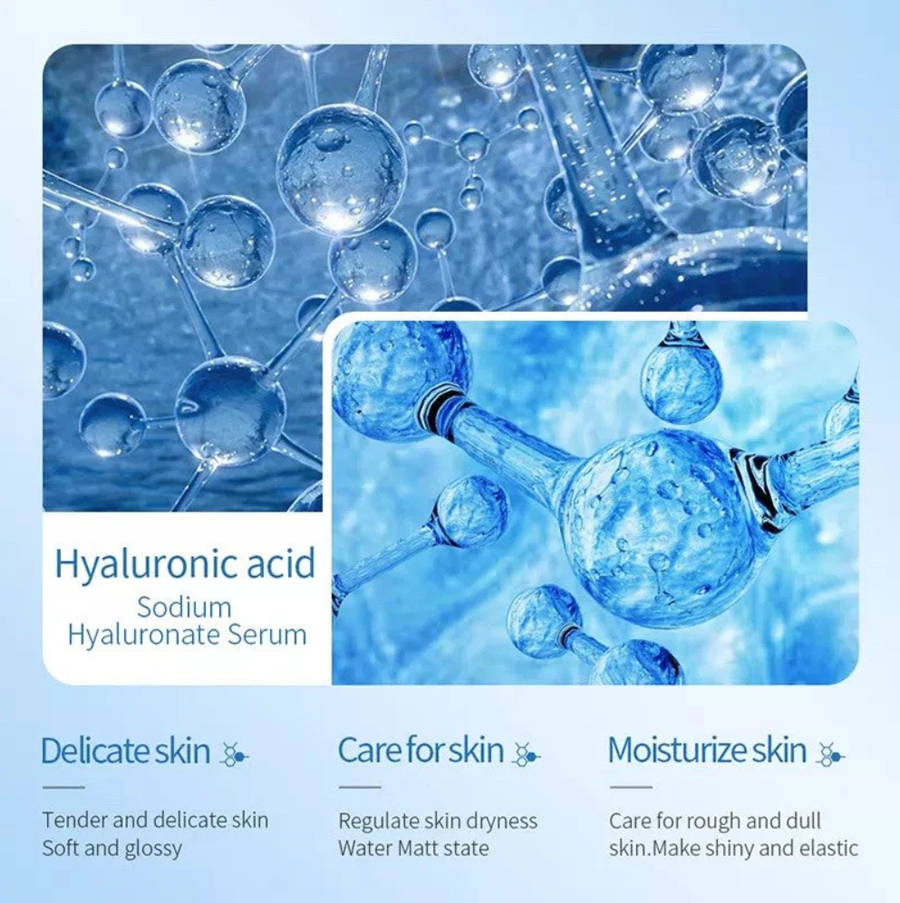 Гиалуроновая кислота создаёт на поверхности кожи защитную сеточку, препятствующую излишнему испарению влаги. Одновременно кислота проникает сквозь поверхностные слои кожи, достигая дермы, восстанавливая естественный гиалуроновый каркас кожи и способствуя внутреннему увлажнению кожи.