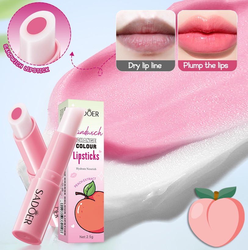 Бальзам для губ с Персиком 2 в 1 "Увлажнение + Оттенок" Sadoer, 2,5 гр.