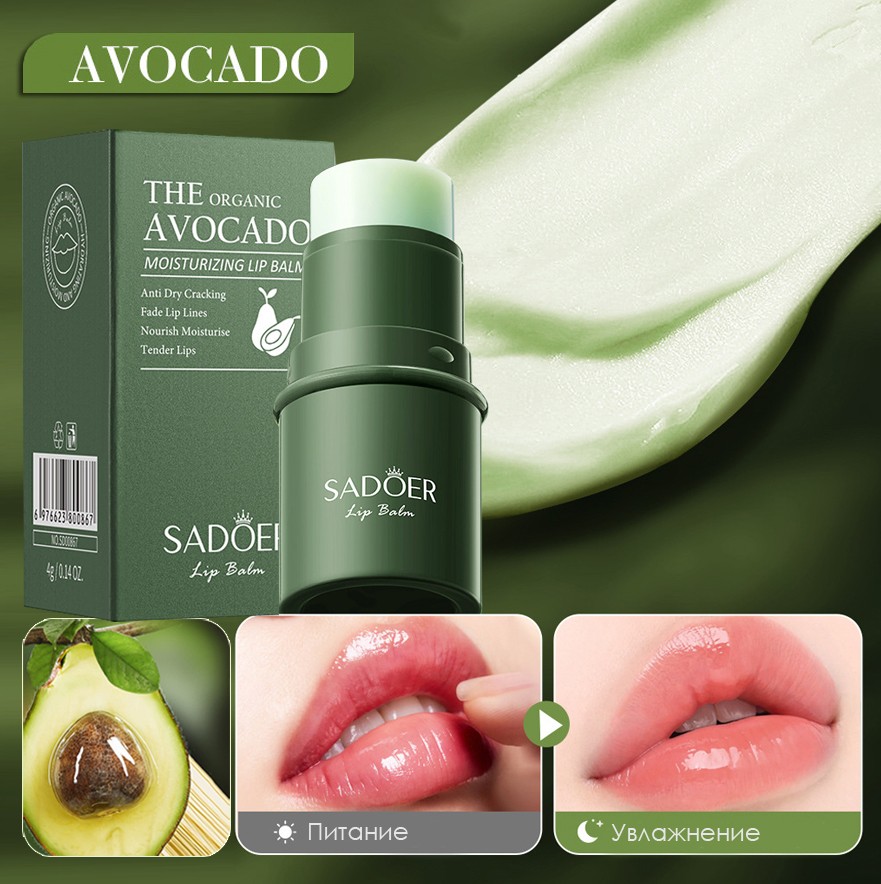 Бальзам для губ c авокадо смягчает чувствительную и обветренную кожу губ, глубоко увлажняет, питает и устраняет шелушения.