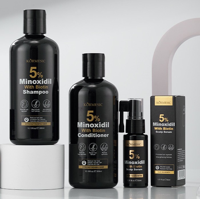Активные компоненты: Миноксидил 5%, Биотин, экстракт Имбиря, экстракт Женьшеня, комплекс Пептидов.