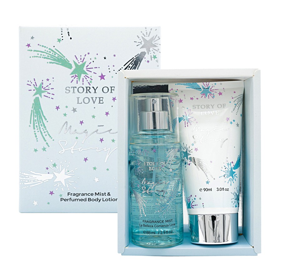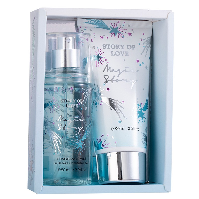 Парфюмированный набор состоит из двух продуктов - спрея (88 мл). и лосьона (90 мл.)