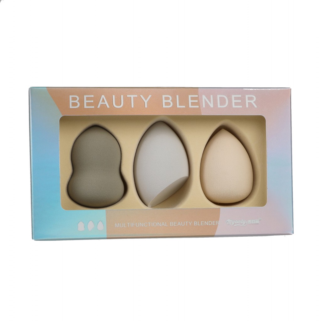 Набор спонжей для макияжа 3 штуки для нанесения жидких, кремовых и пудровых текстур.