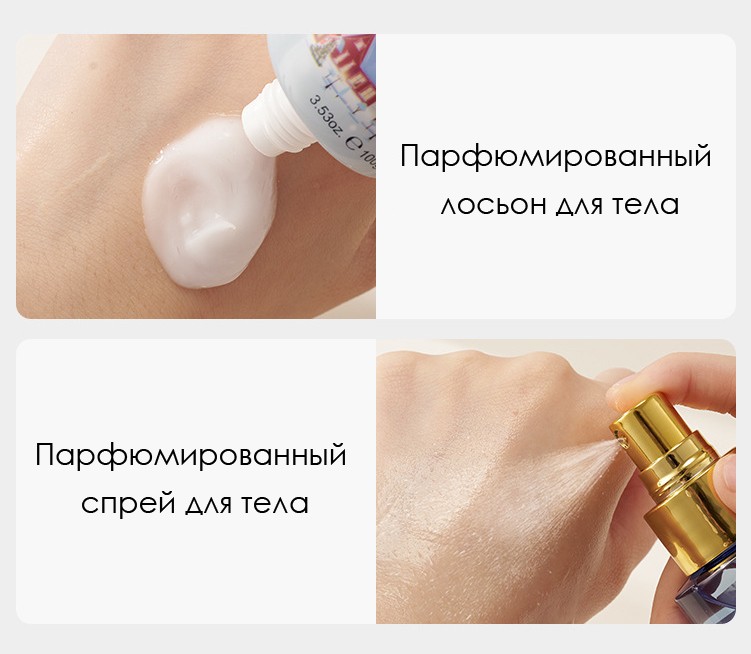 Способ применения: Нанесите лосьон и затем сверху нанесите парфюмированный спрей для тела, для более стойкого аромата.